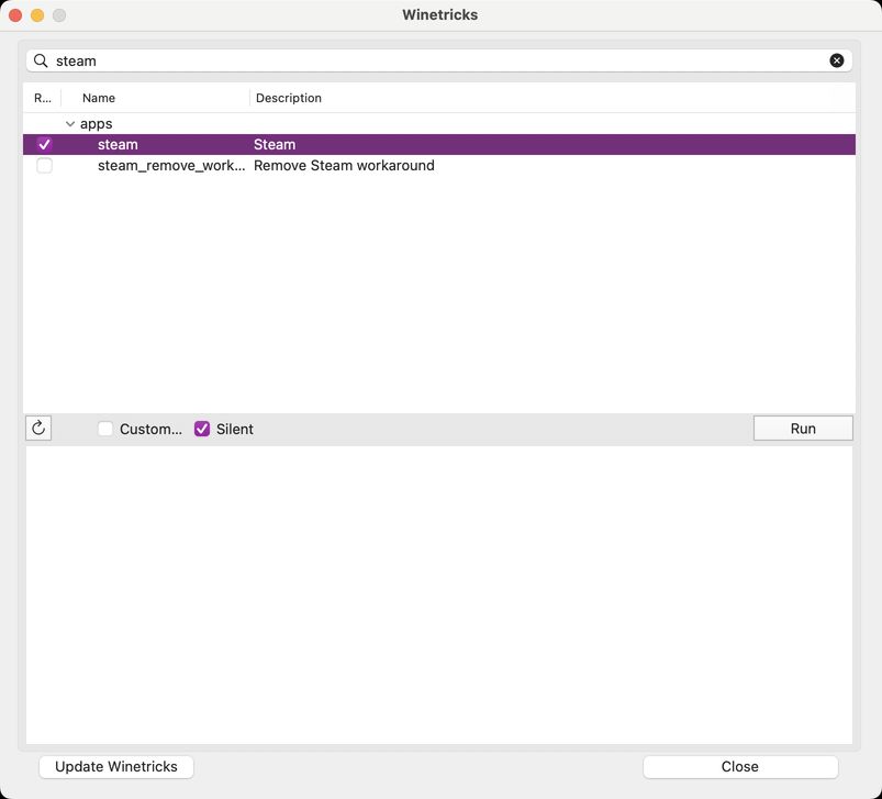 - You want to run steam. Probably. Open winetricks and run the steam action.